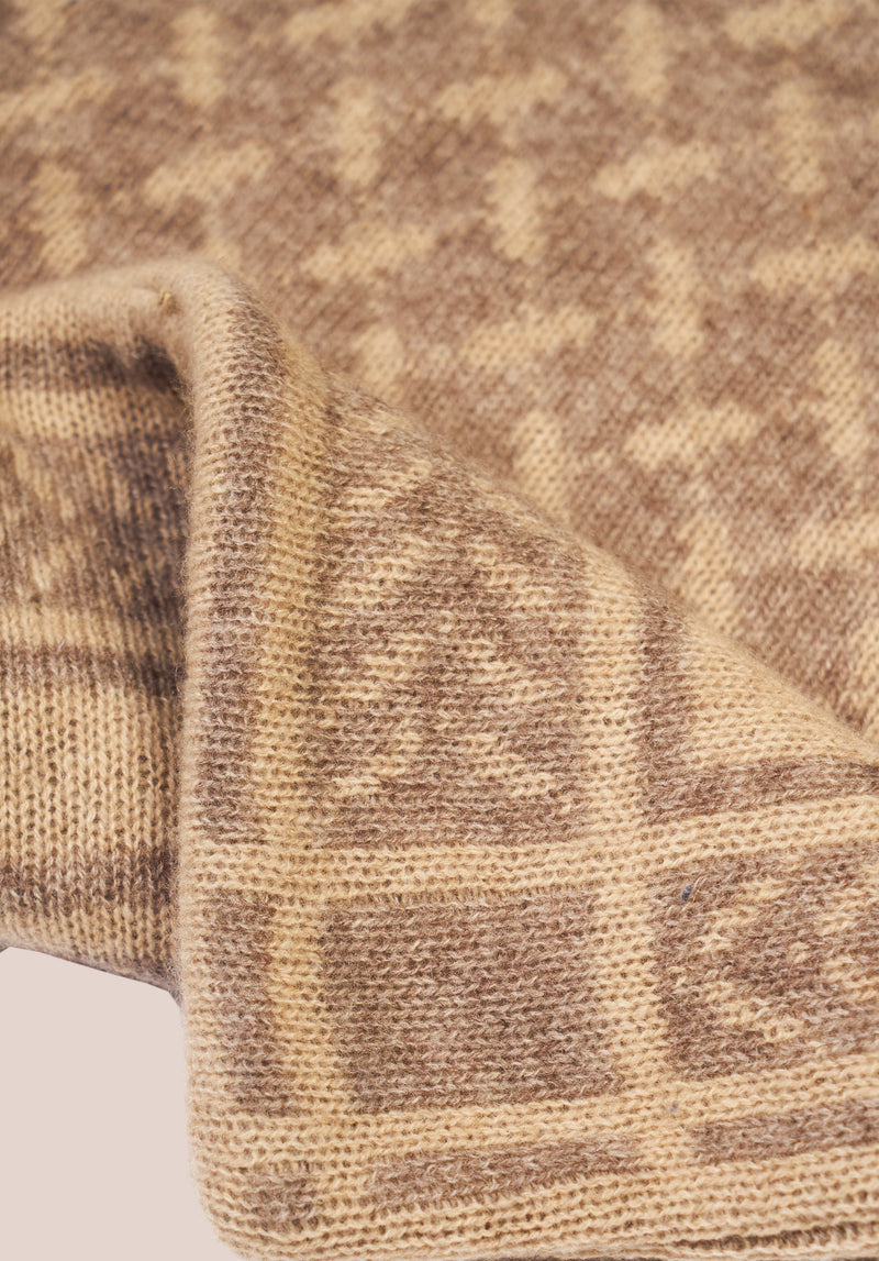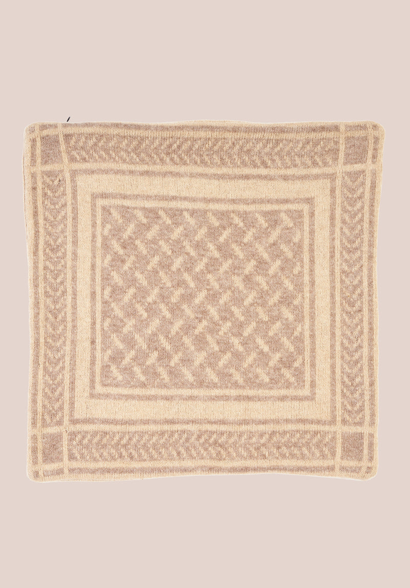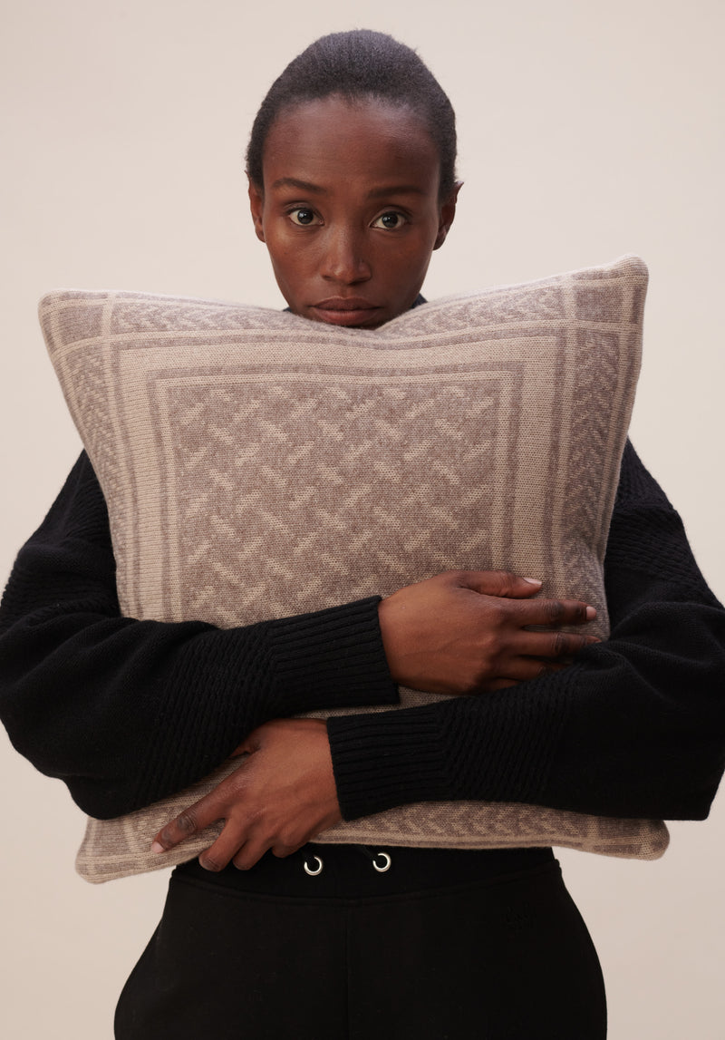 A soft and luxurious cashmere pillow with a jacquard pattern in soft beige.