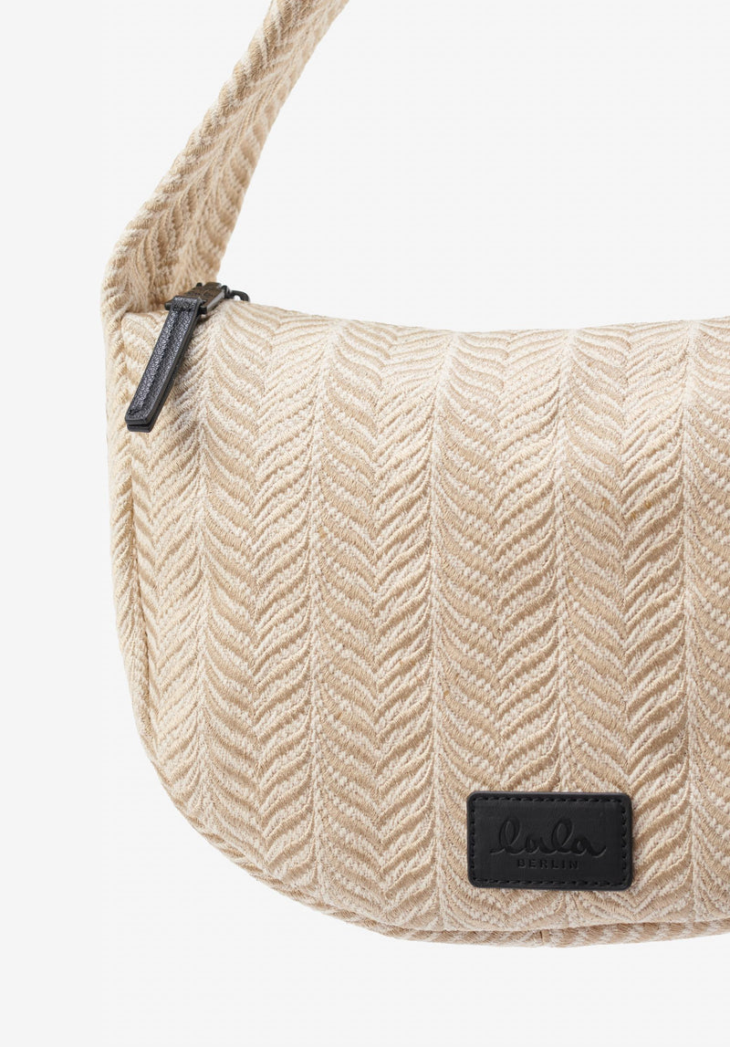 Elevate your summer style with the cushiony comfort and casual elegance of the baguette like handbag Mael. Its chic chevron embroidery in sandy cream adds a touch of texture and sophistication, making it the perfect accessory for both beachside strolls and city adventures alike.