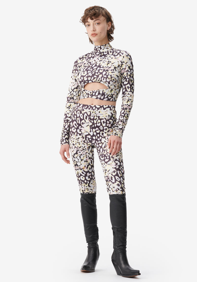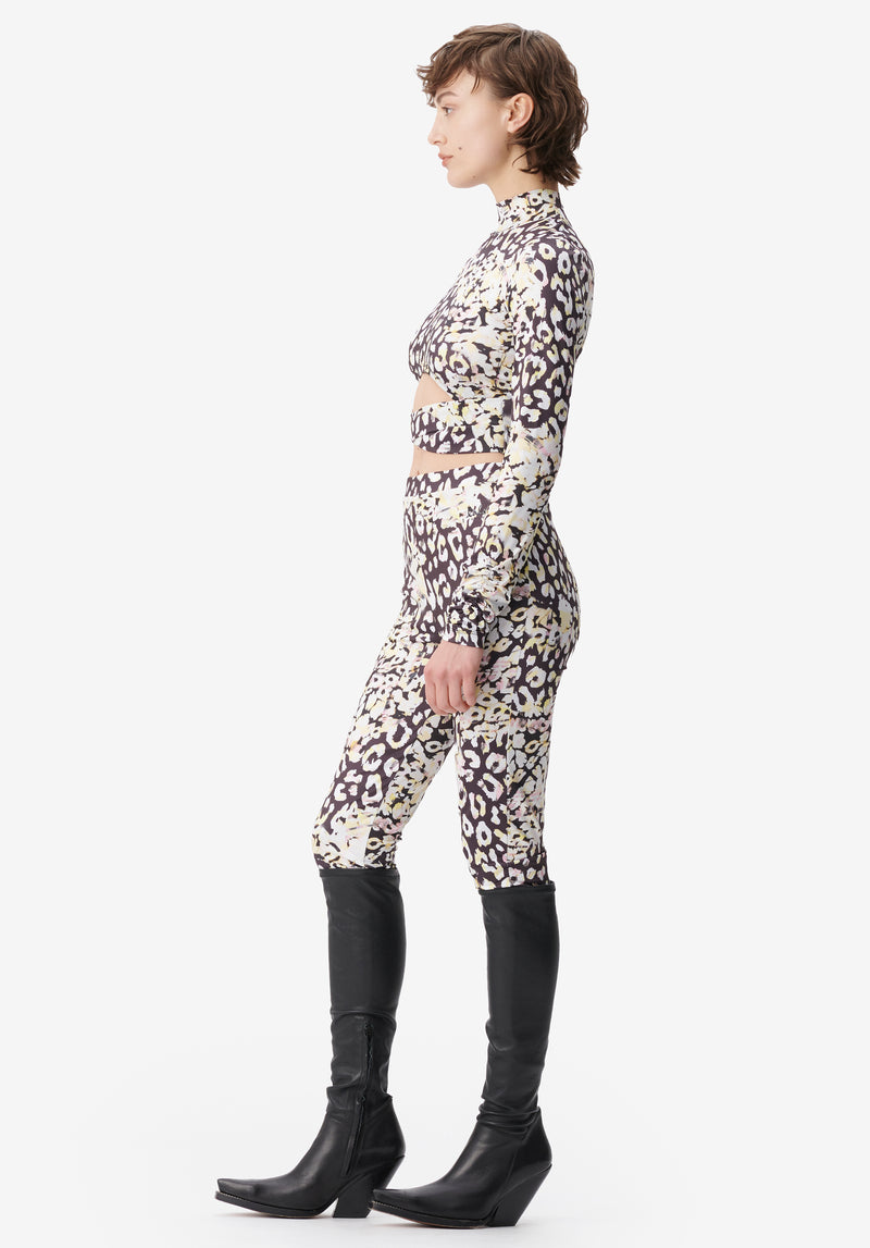 A sexy silhouette with a floral leo print. Our brand new crop top, Issay, features a soft, stretchy fabric with some hot cut-out details at the right places. Combine Issay with Legging Leonie for a full-on leo look.