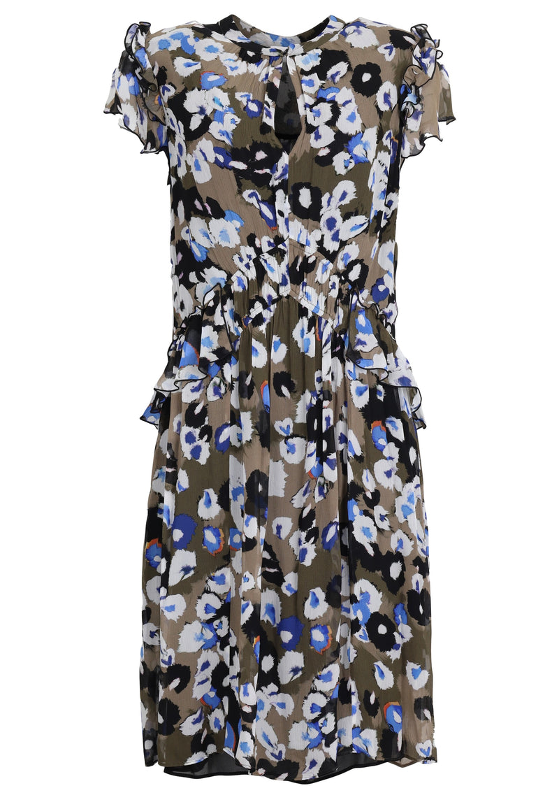 A breezy summer dress made of lightweight viscose fabric, featuring our Liquid Leo Blue print - powerful, poised, wild & wonderful. Flounces and a small stand collar top off the feminine design.This item has been loved by someone before you, but we made sure that it is in top condition. If you order a new item in the same order as this one, you will receive 2 packages, but they will be shipped to the same delivery location. You will receive two tracking codes, one for each package, when we have shipped your packages.