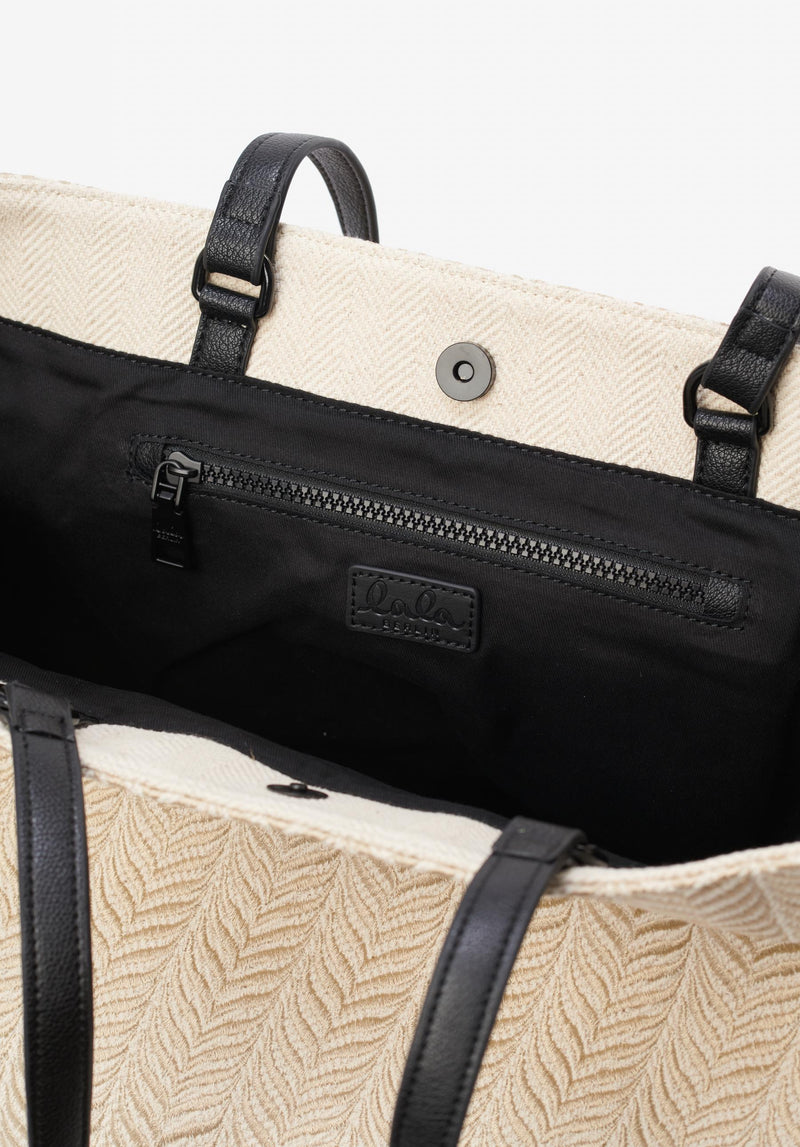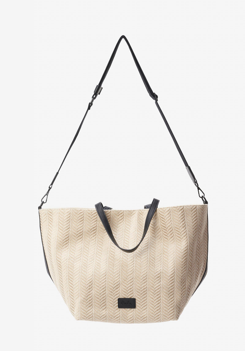 An elegant silhouette with a soft feel. For women on the go, Shopper Monna is the perfect day-to-day bag. This bag is made from a summery cotton linen mix embellished with chevron embroidery in sandy cream. An updated design featuring feminine handles from vegan leather completes the look.