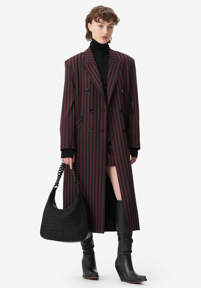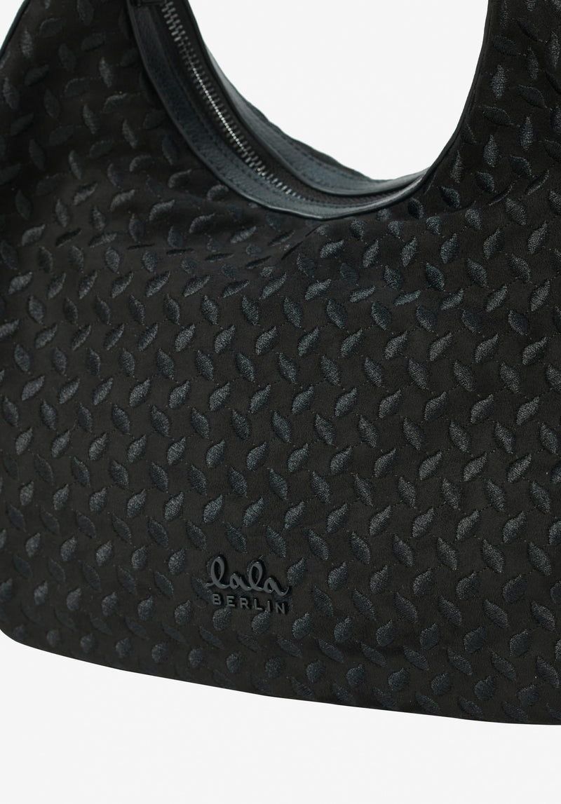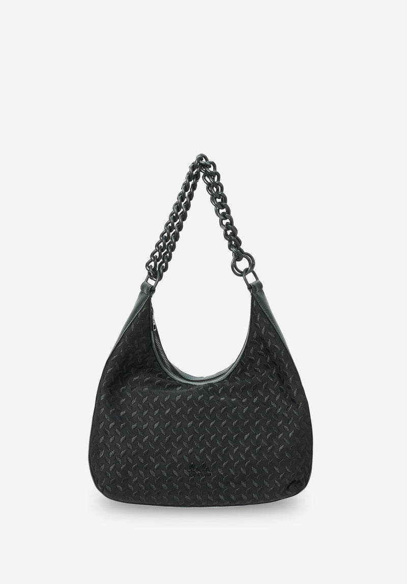 An elegant double chain shoulderbag in soft vegan suede offers a modern aesthetic. A delicate heritage embroidery made of shiny yarn elevates the surface. Marta can be worn crossbody if needed by extending the chain.