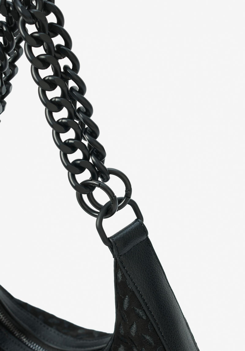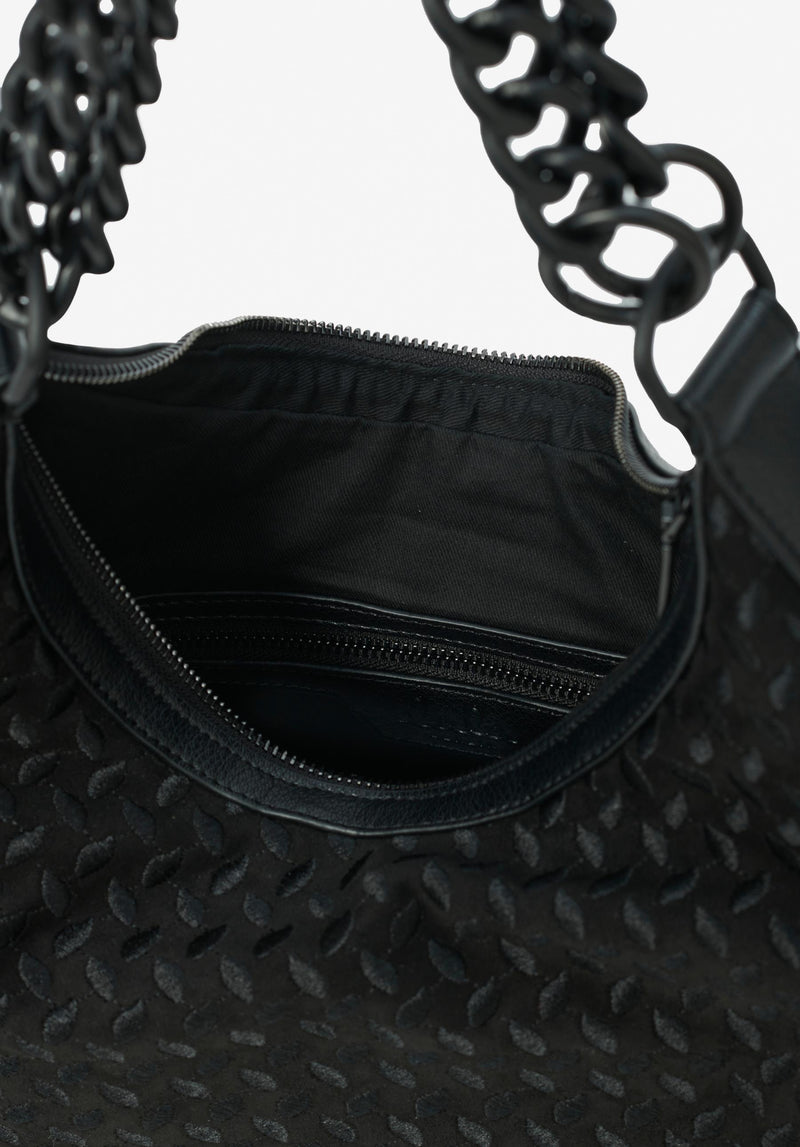Shoulderbag Marta heritage suede black - An elegant double chain shoulderbag in soft vegan suede offers... - 6/6