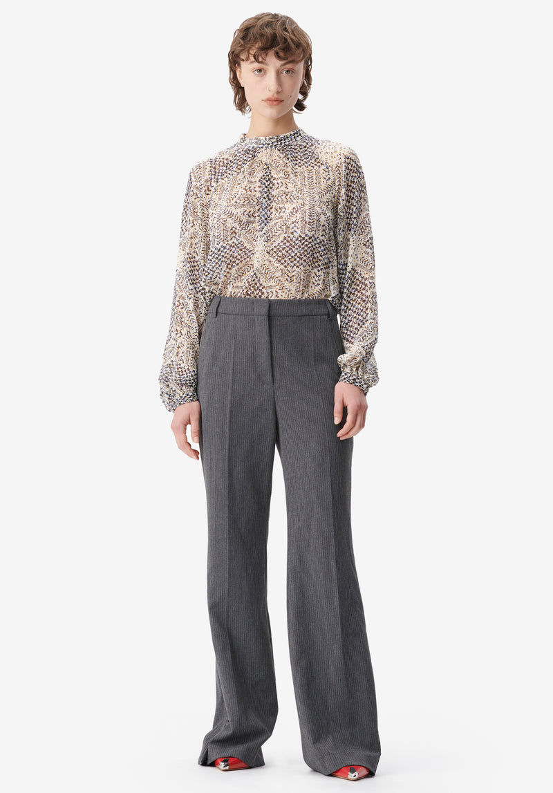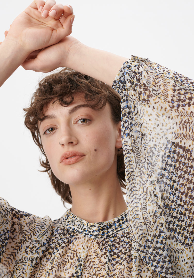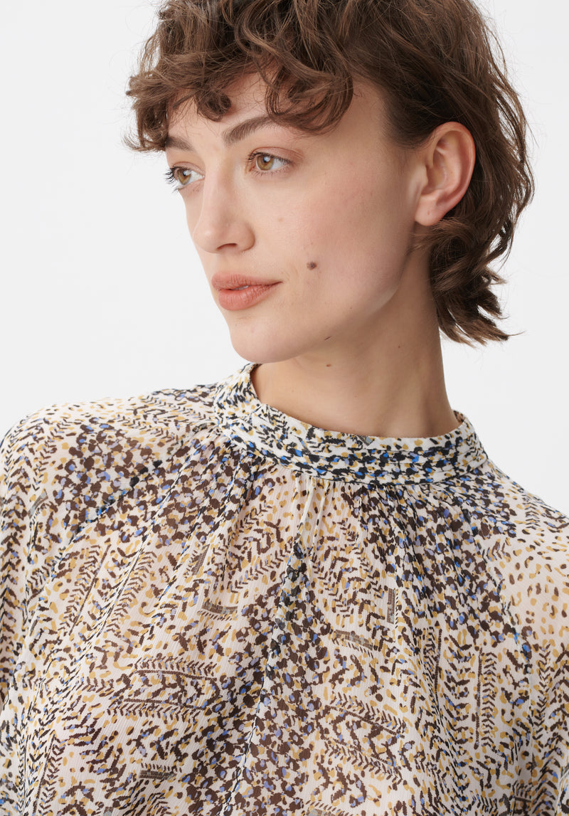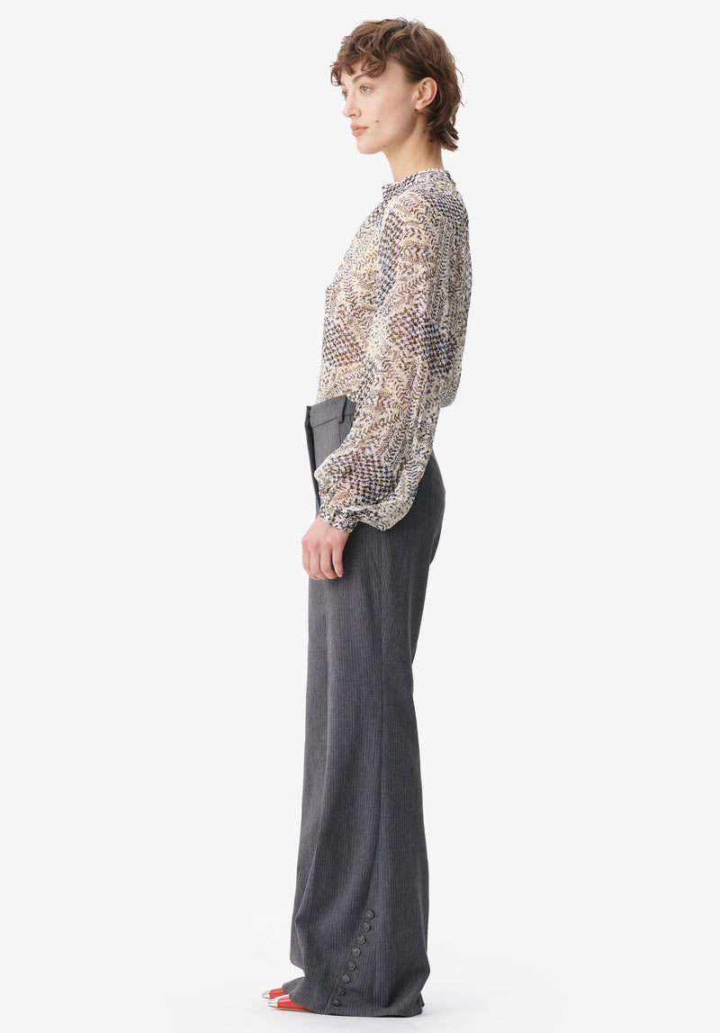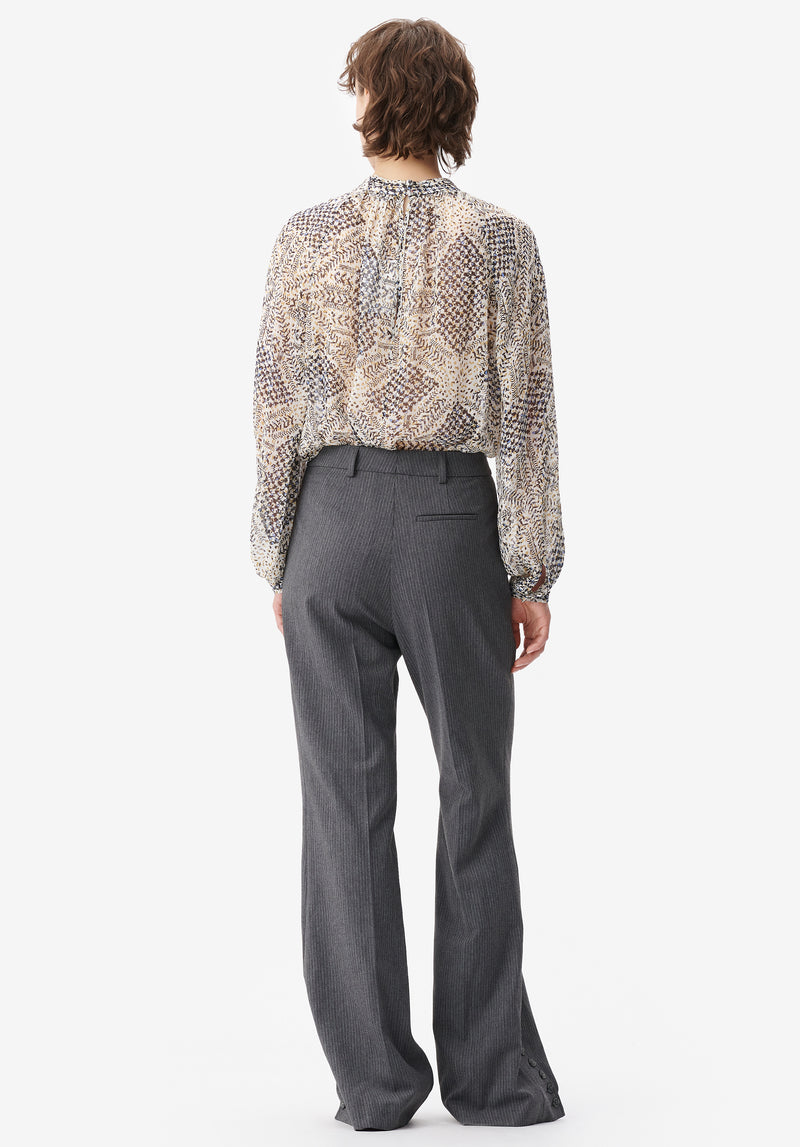 - Fastening: button placket in the front