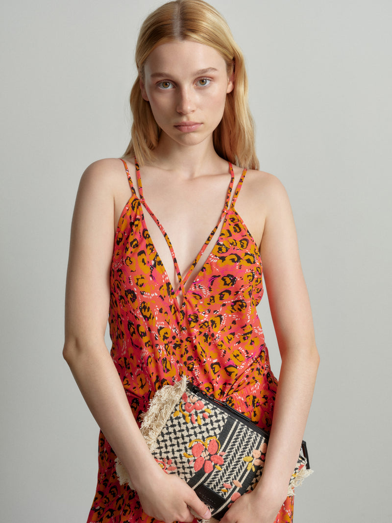 Unleash your inner fashionista with Top Toana! This bold and exotic top features adjustable straps for a perfect fit, and the flirty slits at the side seams add a playful touch. Stay stylish and comfortable all day long in this statement piece.