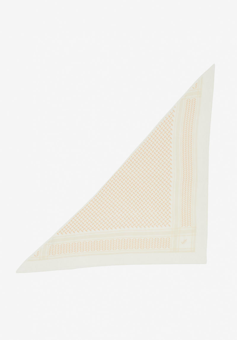 This is a new look for our luxurious cashmere Triangle. A subtle, almost faded heritage print is exhibited in soft colors such as rosewater, vanilla, and light brown on the Trinity Triangle. Designed from 100% cashmere and oh-so-lala, Fall/Winter 23 is all about comfort and coziness.